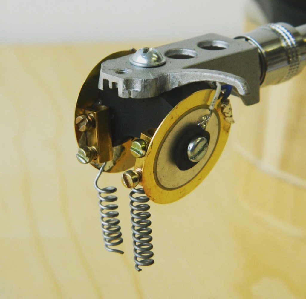 My own solution to playing mangled and abrasive records has been to use contact mics attached to a headshell, with screw mounts for different materials. There’s a similarity with gramophone needle attachments, which has reminded me that for acoustic shellac record players, alternative materials could be used to change the tone and volume of the playback. Steel gramophone needles are available in different loudnesses (presumably relating to the stiffness of the material) and sometimes bamboo needles were used for quieter playback. With my own headshell I’ve generally used cocktail sticks, kebab skewers, wire, springs, and plastic strimmer-blade line.