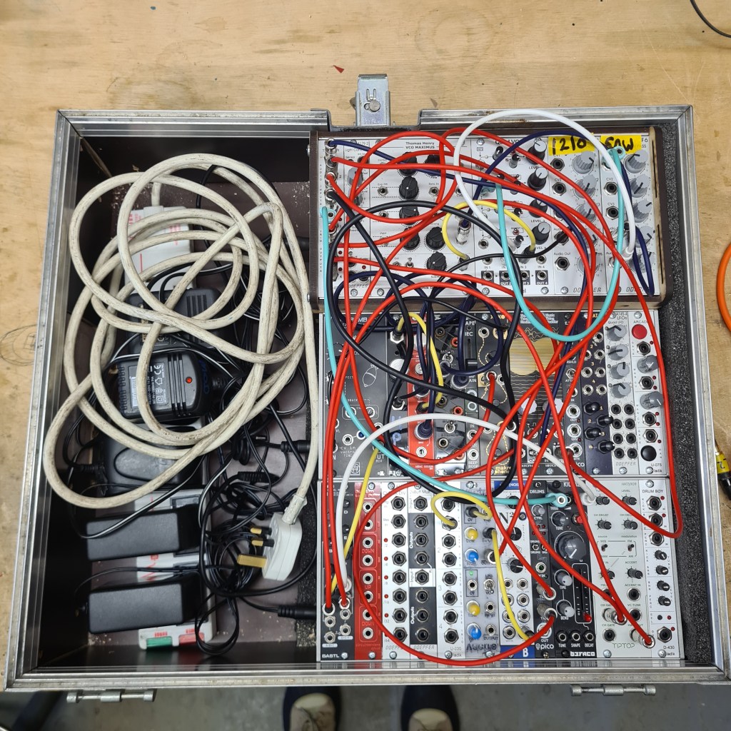 As I’ve built and acquired more Eurorack modules I’ve been slowly working towards a setup which doesn’t require much additional outboard gear. I’ve upgraded a bit at a time and ended up with four small cases. A couple of problems have arisen from this. First, that some of the modules are too deep to fit in certain spaces, so I’ve had to locate them in places which aren’t intuitive to use or particularly convenient. And second, that using separate cases means I can’t really pre-patch anything before a gig, so setting up is long, complicated and stressful.