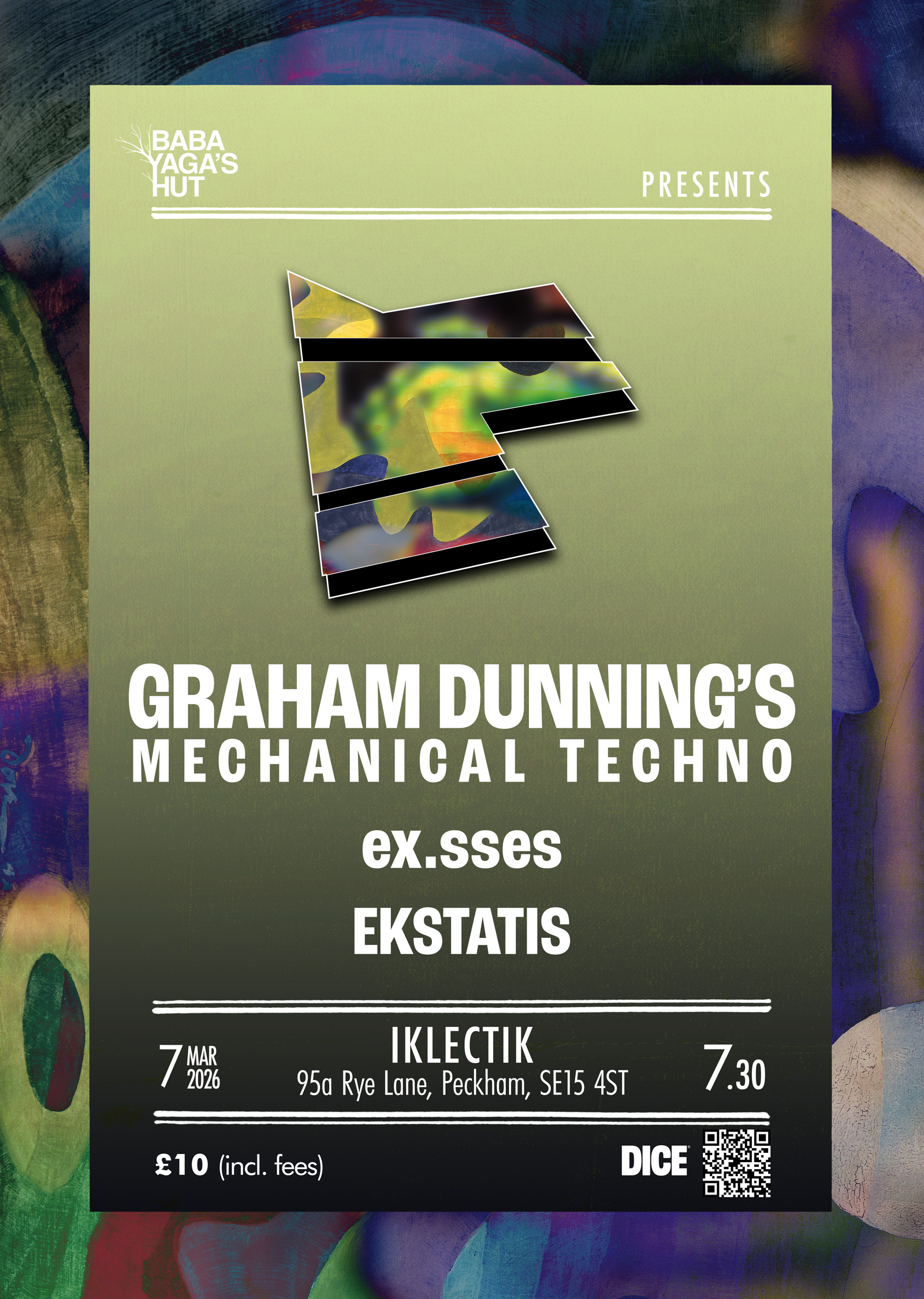7/3/26 | Iklectik, Peckham Levels, London Mechanical Techno live set for Baba Yaga’s Hut. Sharing the bill with experimental sound artist, producer and DJ ex.ssess & noise/ritual musician and noods Radio resident Ekstasis. |